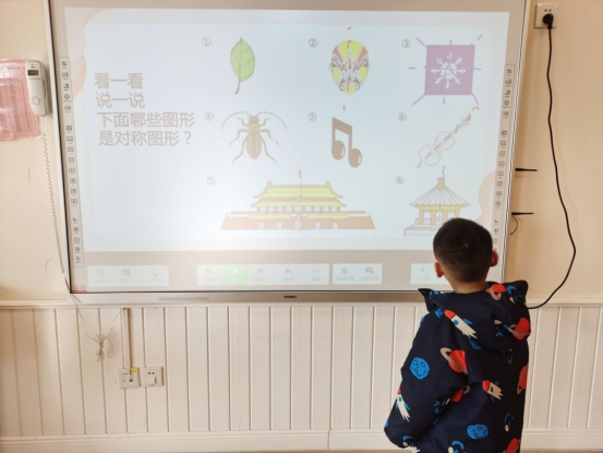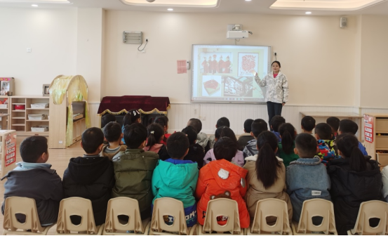 “剪纸是谁发明的?”“剪纸需要哪些材料。”“剪纸除了帖在窗户上,还有什么作用呢……”在语言活动《剪纸的由来》中,教师以视频、PPT等形式展示丰富多彩的剪纸作品,让孩子了解了不同类型的剪纸作品并认识其中的特点。