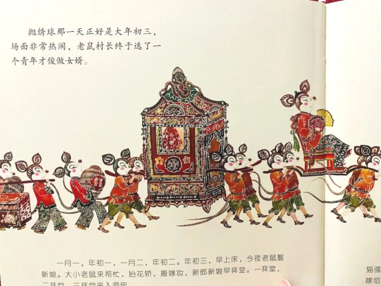 又到了饭后绘本阅读的时间,老师拿来了一本《老鼠嫁女》的剪纸绘本,引起了孩子们的兴趣和讨论。