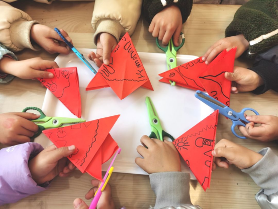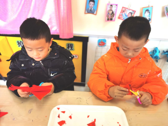 在孩子们的童言稚语中,我们发现孩子们对剪纸很感兴趣,由此关于剪纸的课程故事便展开了。