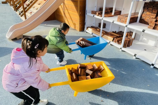 拿的积木太长搬不动的话,可以尝试寻求其他小朋友的帮助或者使用更轻的材料。