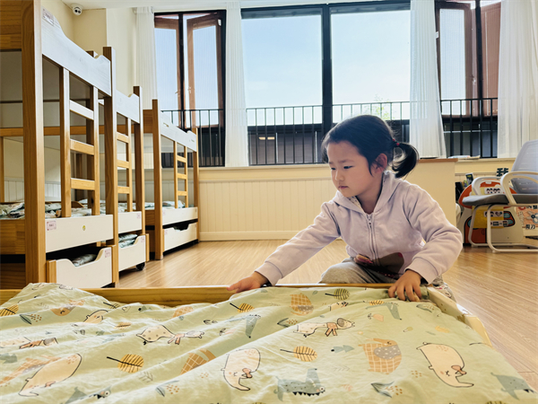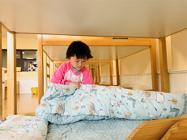 萱萱:午睡时自己脱衣服叠放好,鞋子摆放整齐是好习惯。