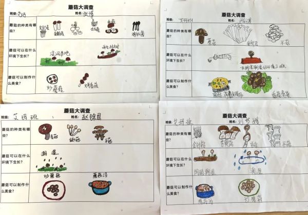 鉴于孩子对蘑菇的了解尚显零散,我们引导孩子和父母、老师一同参与,制作了精美的调查表,共同查阅资料,探访菜市场,寻找蘑菇的奥秘。