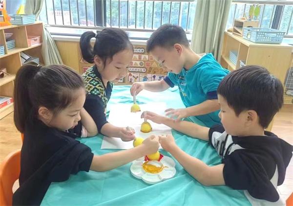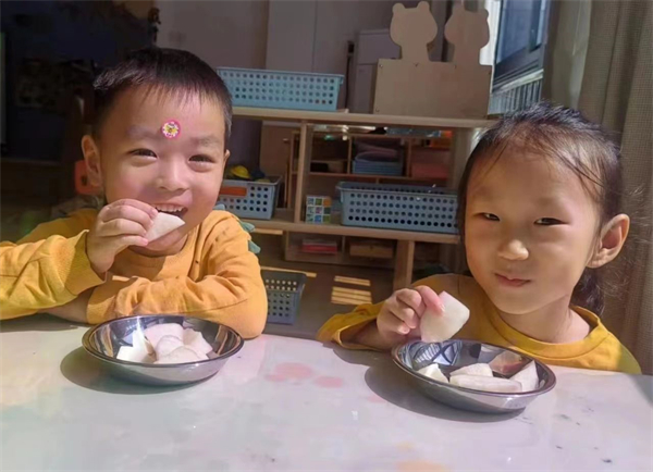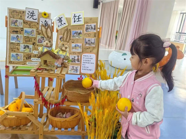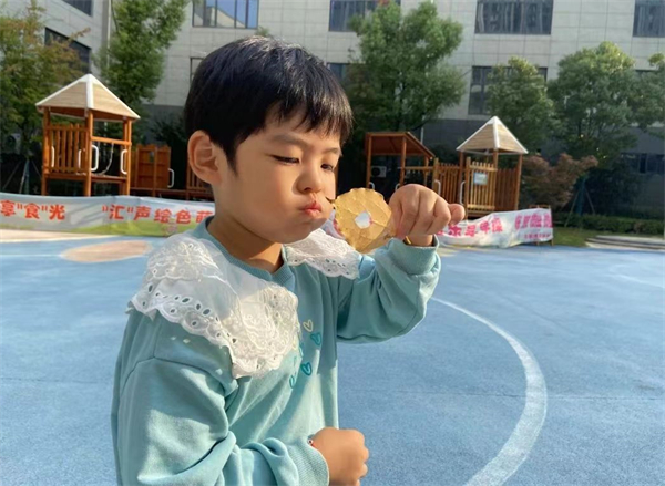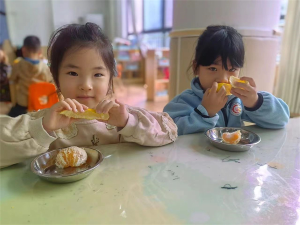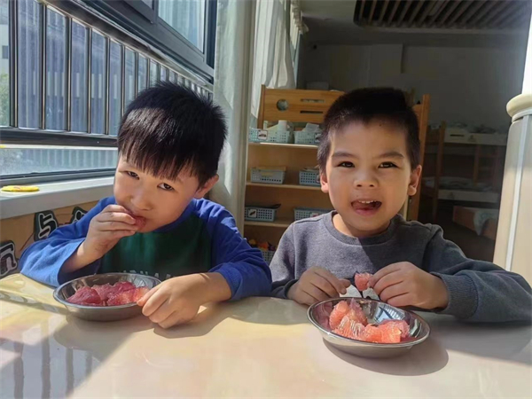 金秋十月,正是丰收的季节。融汇园根据季节特点选择当季新鲜的瓜果,一只只橘子、柚子和梨子等成为孩子们的餐点。