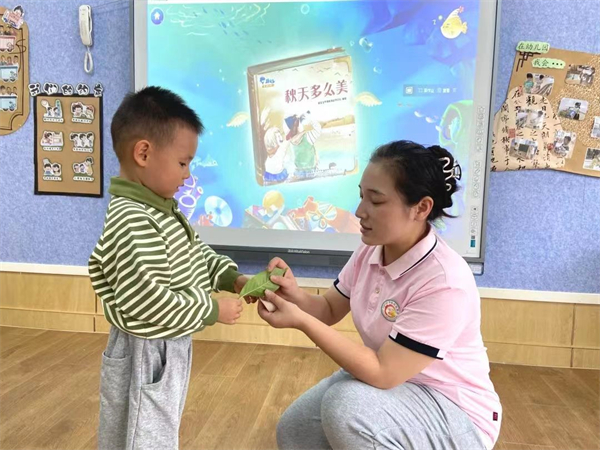 用简单的自然材料,秋天的落叶,玩出了别样的创意,一片小小的树叶,挖一个洞,蘸一点泡泡水,轻轻一吹,一个个彩色的泡泡随风在空中飞舞,孩子们追着泡泡开心得像蝴蝶一样翩翩起舞。