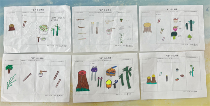 孩子们变成了一个个好奇宝宝,追着老师询问为什么,为了引导孩子自主地去探索筷子的秘密,我们和孩子一起制定了调查表,接着他们便和爸爸妈妈开始了一场“筷”乐大调查,完成问卷调查后孩子们开始与同伴分享和爸爸妈妈的调查结果。