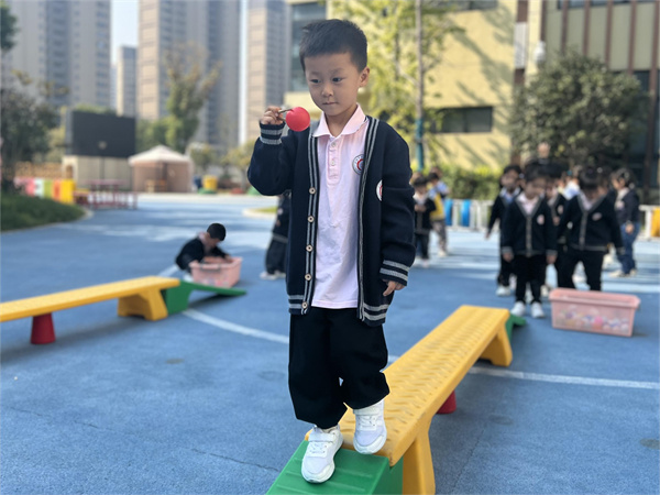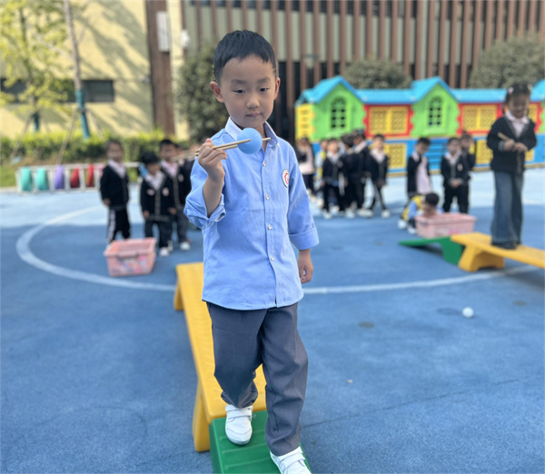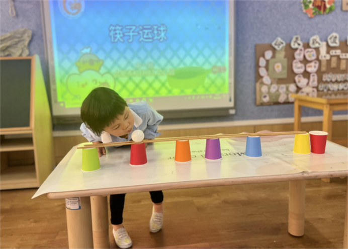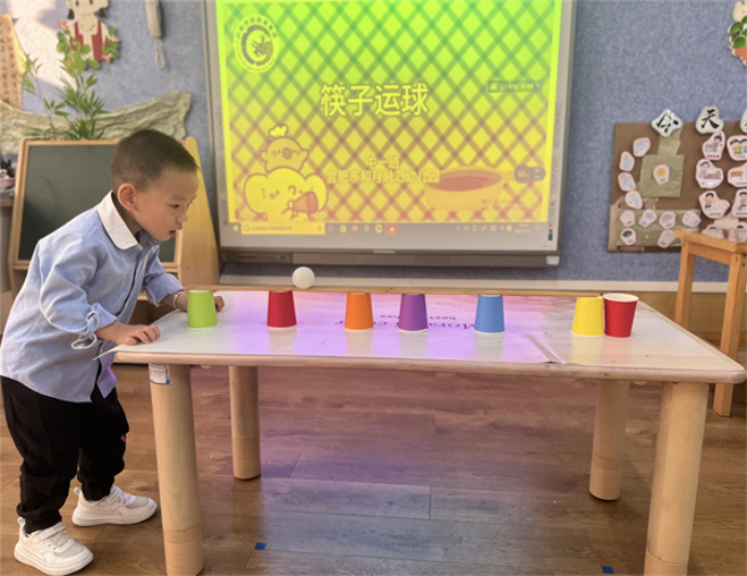筷子夹球,锻炼了孩子们平衡能力和手部力量。