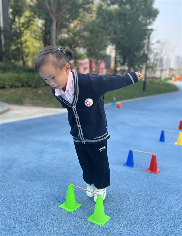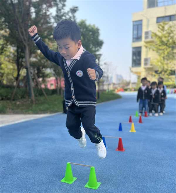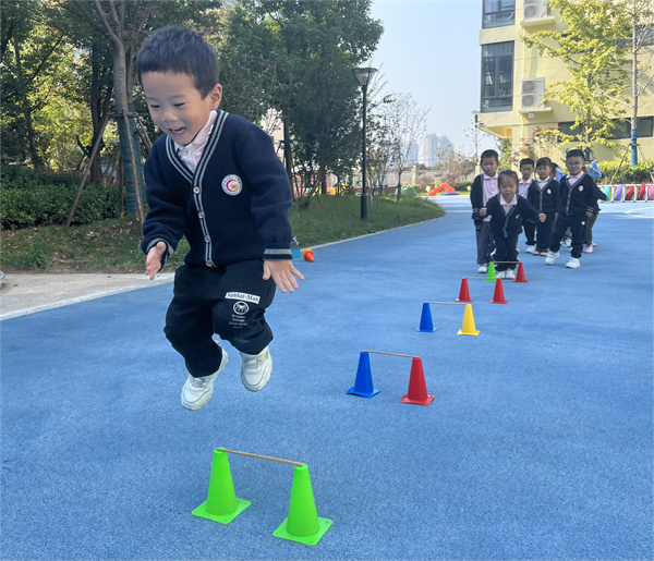 筷子跳跳乐,幼儿练习双脚屈膝向前跳,体验了游戏的快乐。看,他们的脸上洋溢的开心得笑脸。