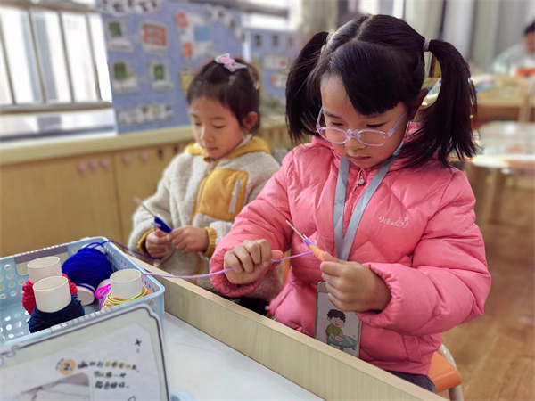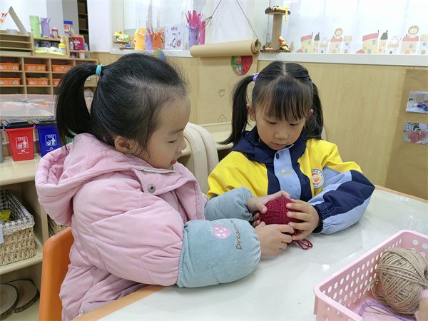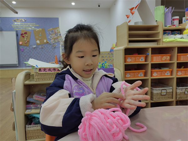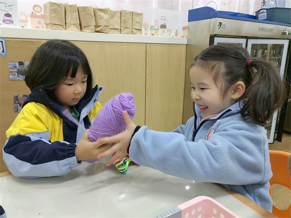乐恩:“上次吴昀朵带来了纸芯桶,可以把毛线绕在那个上面就好了。”