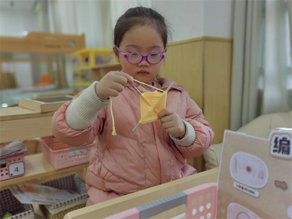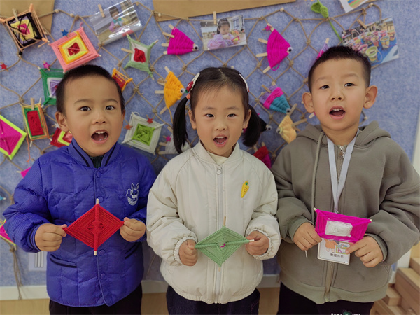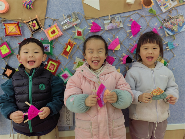 在游戏中,小朋友们的幸福和满足显而易见,教师也被这群充满好奇心,爱探索的小朋友感动着。小朋友们在动手玩中了解编织,学会编织,同时也发展了各方面的能力。