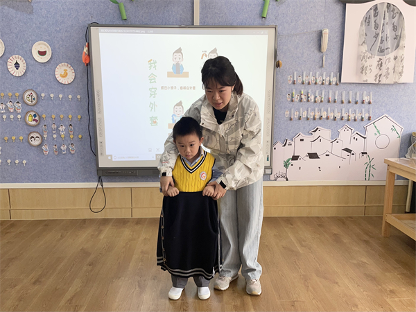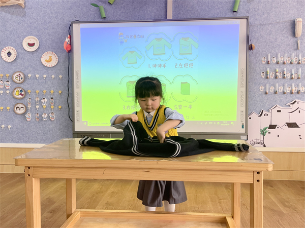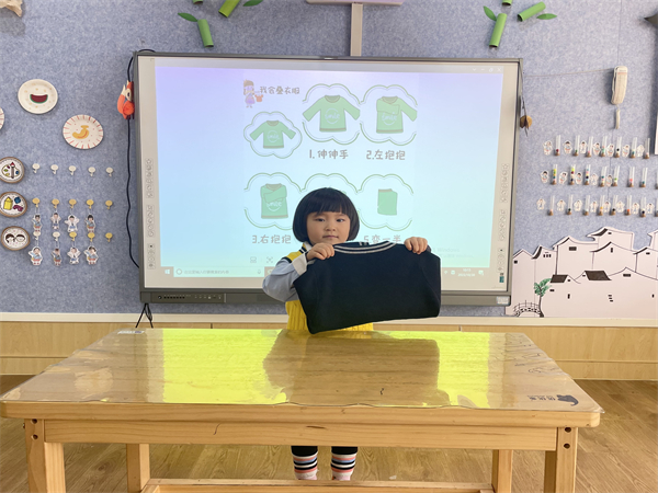 在活动中,老师引导小朋友们学习自己穿衣服和叠衣服的小妙招。让小朋友们在直接感知和实际操作中获得经验,在生活中学习与发展。