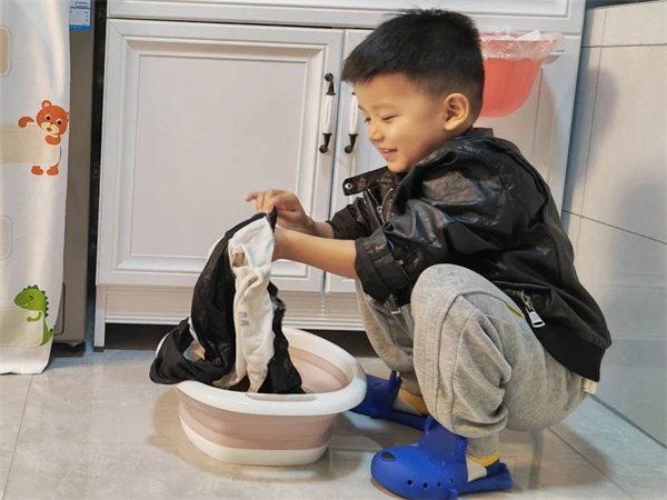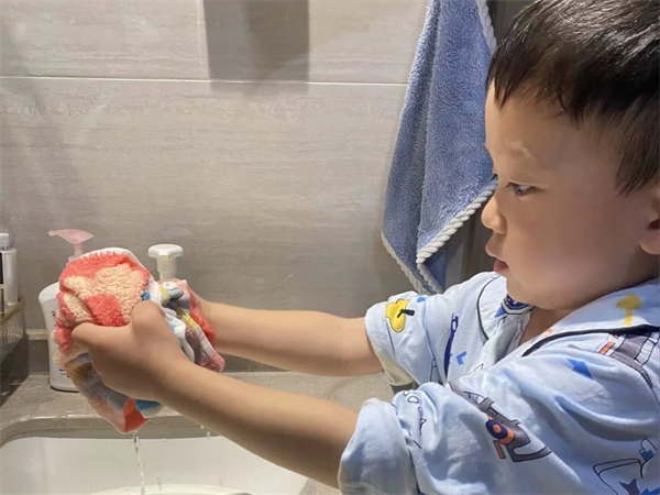 小朋友们回家后,家长们也引导孩子们在家进行自我生活服务,我们一起来看看吧!