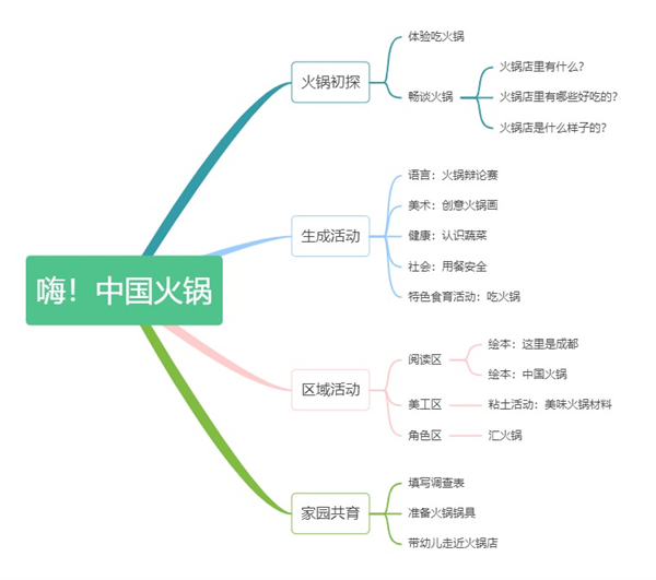在这次班本课程活动中,孩子们根据已有经验生成了新的活动,我们很庆幸能够及时捕捉到孩子们对“火锅”的兴趣。