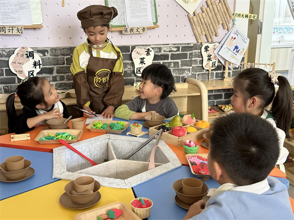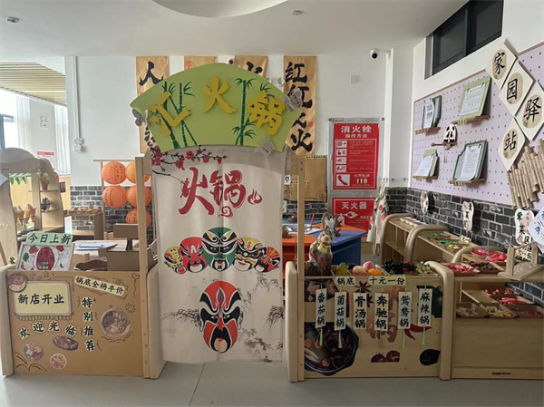 在结合孩子们共同讨论商量后,大三班也开启了本学期的角色游戏之旅——汇火锅。