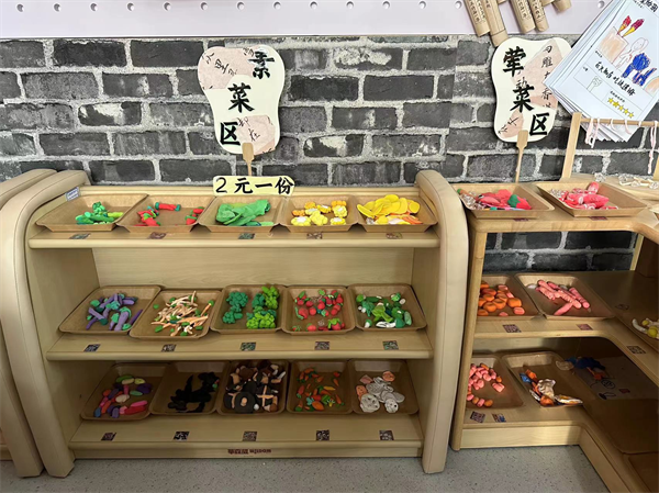 紧接着孩子们动手做了许多的食物充实火锅店,火锅店一下丰富了许多!