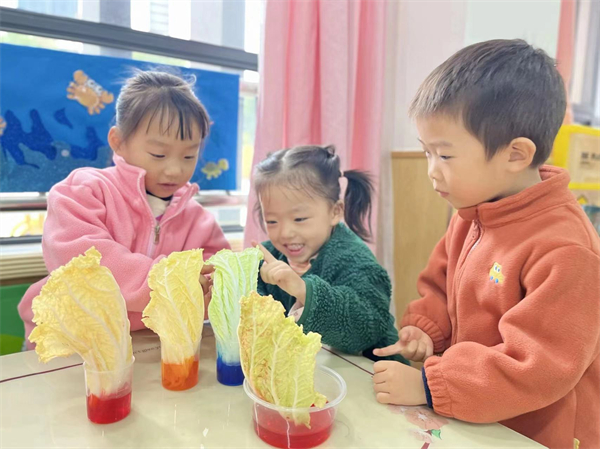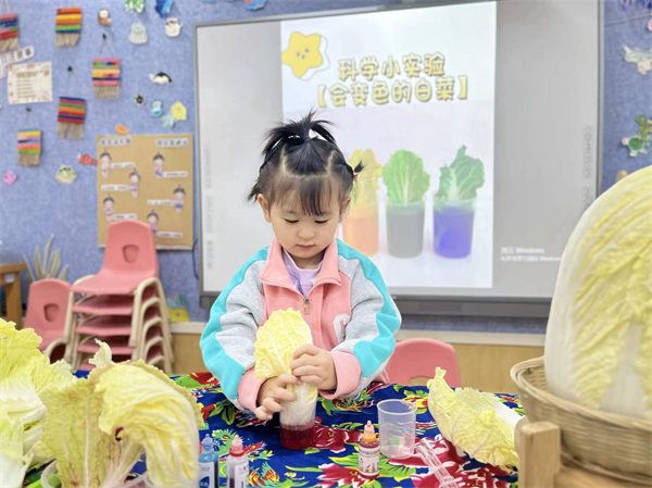 琪琪:那如果把白菜放进彩色的水里,它也会吸收彩色的水变成彩色的吗?
