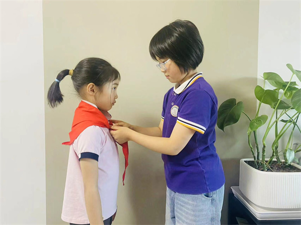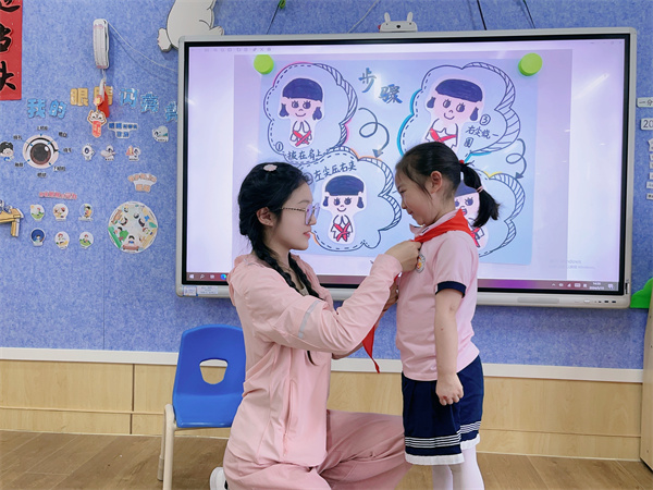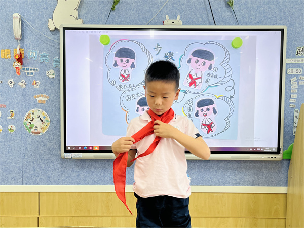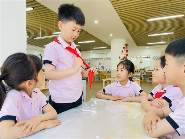 对于孩子们来说,戴上红领巾,树立了自信心,为今后进入小学学习奠定基础。