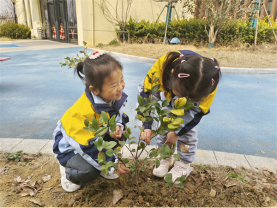 “嘿咻,嘿咻”尽管小朋友们擦着汗,手里的小铲子也没有停下来,今年我们迎来了第四十六个植树节,中二班的小朋友和老师一起为小树苗翻土、浇水,小沐突然问道:“老师为什么大家总是喜欢在春天种树呢?"小朋友们瞬间都被这个问题吸引住了。
