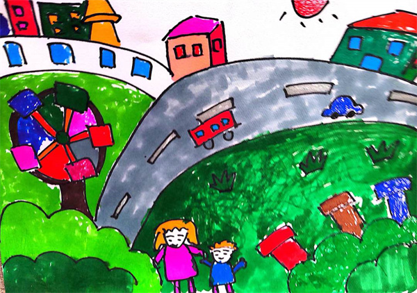 作品名称:《大手牵小手 同创美好城市》