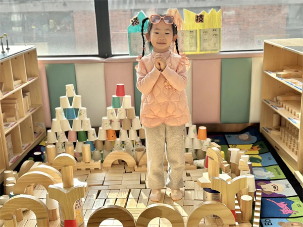沐希在班上是个各方面发展比较优秀的孩子,比较擅于观察,但又不是一个独断专行的孩子,能和小伙伴分工、合作完成作品。搭建时沐希和小伙伴合作默契,而且对“舞台”的结构和布局有了初步的规划,从她选择材料,可以看出她目测、比较等能力的发展。多样化的材料是幼儿自主游戏的调味剂,在与材料的相互碰撞中,激起了她创造的火花。