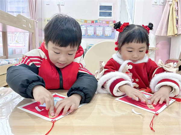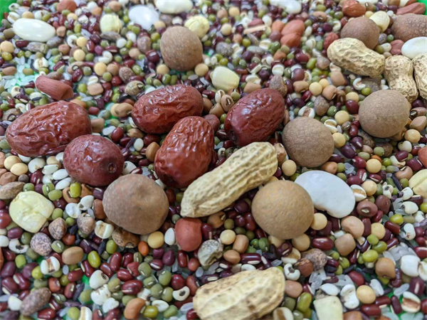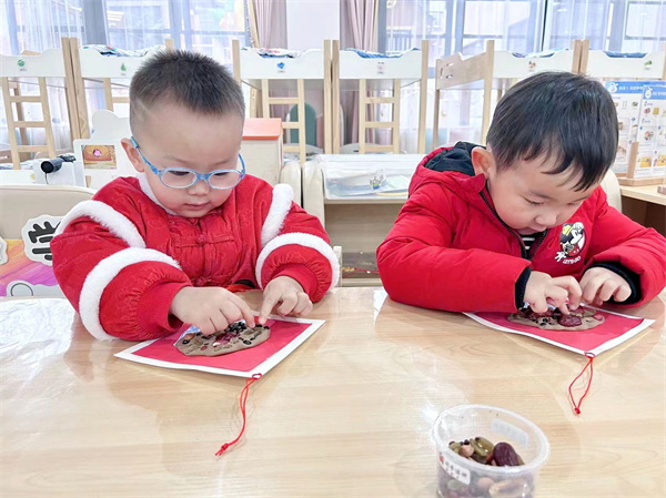 腊八粥的食材不仅提供了食物的营养价值,还蕴含着丰富的文化和象征意义。比如:红豆寓意思念,黑豆寓意富贵平安,花生寓意健康长寿,桂圆寓意团圆等。快看!红豆、黑豆、花生、绿豆、桂圆等腊八粥的原料通过小一班小朋友们的创作变成了一幅幅精美的豆贴画吊坠,真的好看极了!