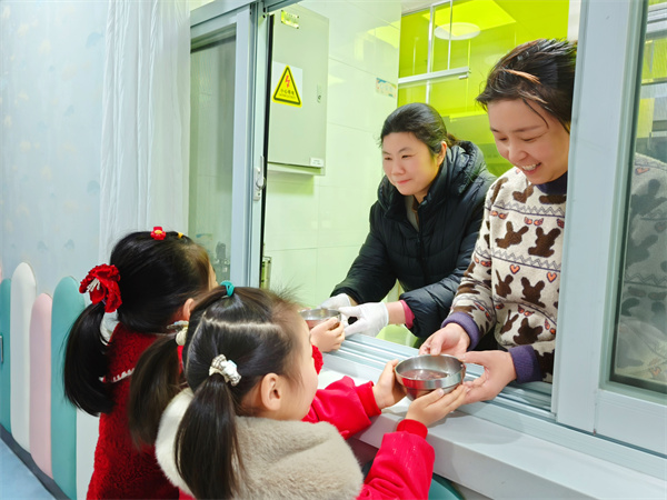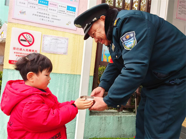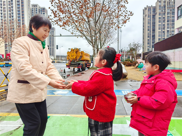 大家快瞧!在这个寒冷的冬天里,制作腊八粥的小朋友们把一碗碗热气腾腾的腊八粥送给了园门口站岗的保安爷爷,感谢他辛苦的保卫我们的幼儿园。与此同时,厨房阿姨们和保洁奶奶也收到了甜甜的腊八粥,不禁赞叹:“真的太温暖了!谢谢可爱的小朋友们!”