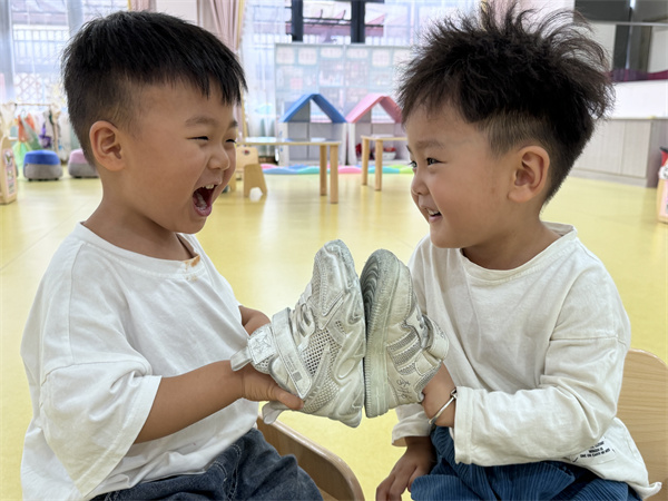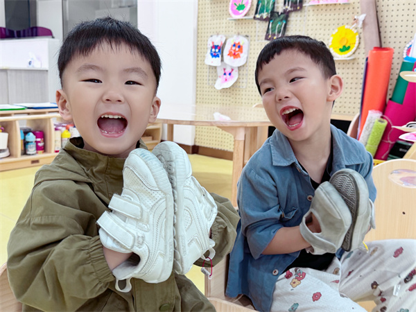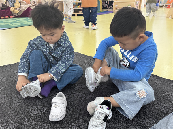 此次活动起源于幼儿的兴趣,经历了最真实的过程,产生了最有价值的课程,将幼儿平时被动的学习变为主动的探索,幼儿的自主性积极性、创造性得到充分的发挥。我们抓住了日常生活中“托班幼儿穿鞋难”这一教育契机,幼儿在活动中不仅掌握了穿鞋的生活技能,提高了生活自理能力,还和鞋子成为了好朋友。由于托班幼儿的认知水平还不能区分左右,在生活中还会有穿反鞋的现象,但在以后的生活中,老师会和幼儿继续探究穿鞋子的秘密。