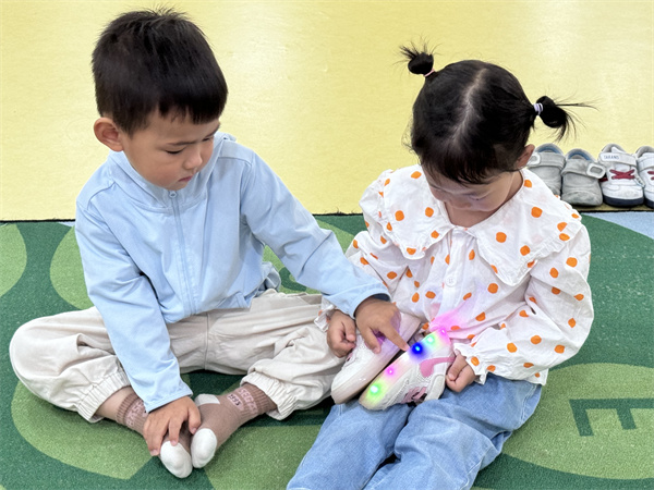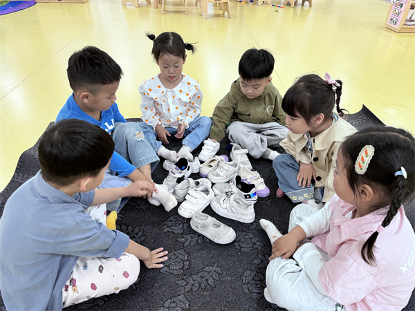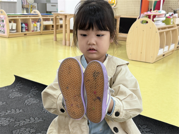 为什么鞋底不是光滑的?我的鞋子比他的大吗?为什么他的鞋子会发光?孩子们的脑袋里总是冒出这样那样的问题,带着这些问题我们带领孩子们去求知、探索和实践。