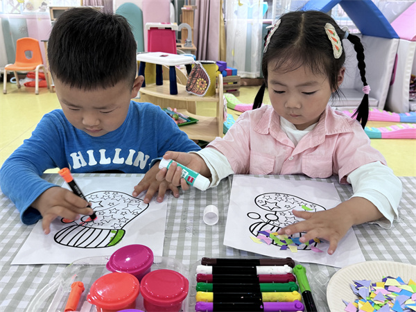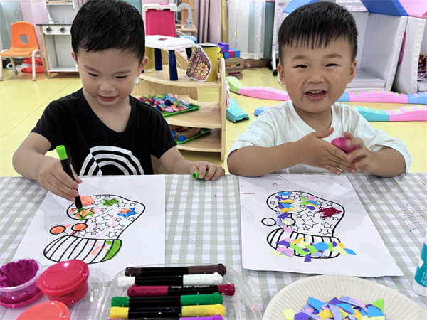 孩子们常常把创意美工当作一种游戏,涂涂、画画深受他们的喜爱。瞧,孩子们化身为小小艺术家,通过撕、贴、粘、画,制造出一双双属于自己的小鞋子。
