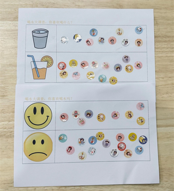 我们在幼儿园中可以观察到幼儿的喝水情况,那么在家中幼儿的喝水情况是什么样的呢?我们决定用通过投票的方式进行了解。