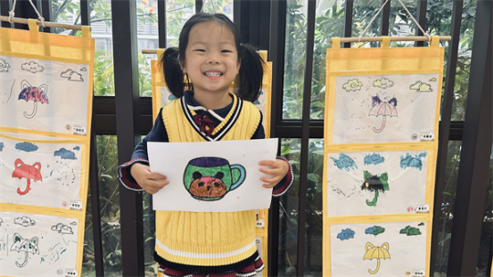 昕昕:我水杯上的小熊是黄色的,水杯是绿色的,非常可爱哦。