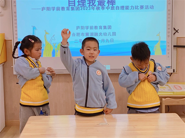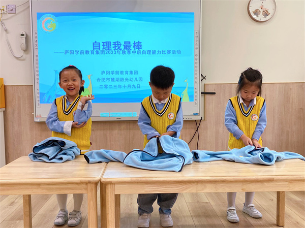 教育学家陈鹤琴说过:“凡是孩子能自己做的事情就该让孩子自己做”。为了将幼儿生活习惯的培养融入教育教学工作中,提高生活自理能力,促进身体的协调性和灵活性发展,养成自己的事情自己做的良好习惯,2023年10月9日,合肥市麓湖融光幼儿园中二班进行了“自理我最棒”自理能力比赛活动。