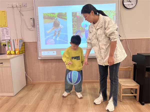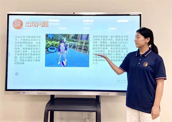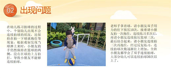 幼儿们通过观察老师拍摄小朋友拍球的视频,利用经验分享和坚持练习等方式,逐步征服这个总是跳来跳去的“小精灵”。