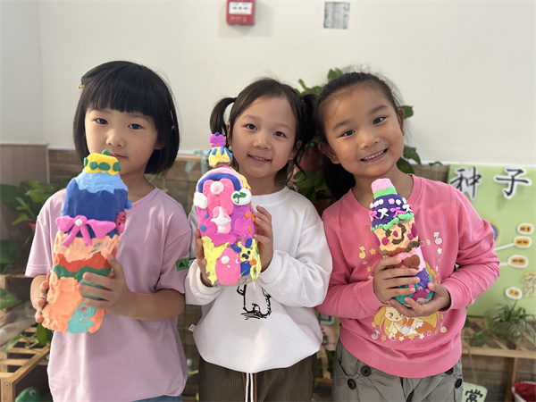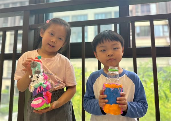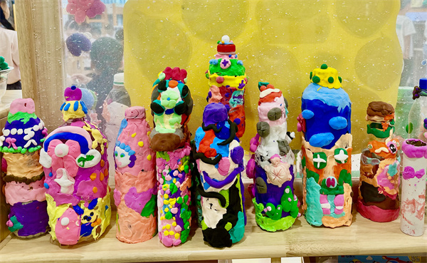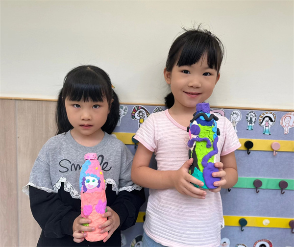 “老师,瓶子上的图案都是什么意思?”孩子们带来了很多不同的瓶子,瓶子上有许多特别的图案,孩子们想到,既然设计师会设计不同的图案,我们也可以设计不同的图案呀!我们可是非常会设计呢!孩子们开动脑筋,用各种颜色的超轻粘土对瓶子进行装饰,将原本平淡无奇的瓶子变成了漂亮的彩瓶。让我们一起来看看小朋友们的奇思妙想吧。