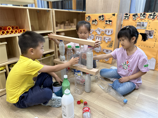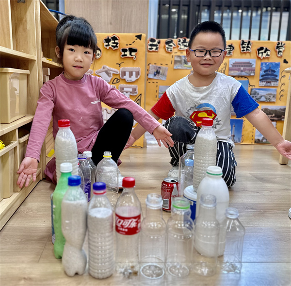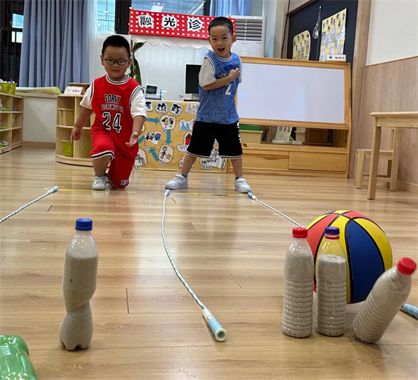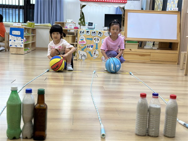 孩子们除了发现可以在瓶子上进行装饰,他们还发现瓶子多种玩法呢。瓶子滚滚乐,孩子们通过玩一玩、滚一滚,对瓶罐滚动的特性有了进一步的感受。瓶子保龄球,来一场紧张**的“瓶子保龄球”比赛吧。摆好姿势,准备开始。玩瓶子搭建游戏时要全神贯注哦,用不同大小的瓶子搭建高楼,搭建时要小心翼翼的,稍微一不注意,就会倒塌呢!