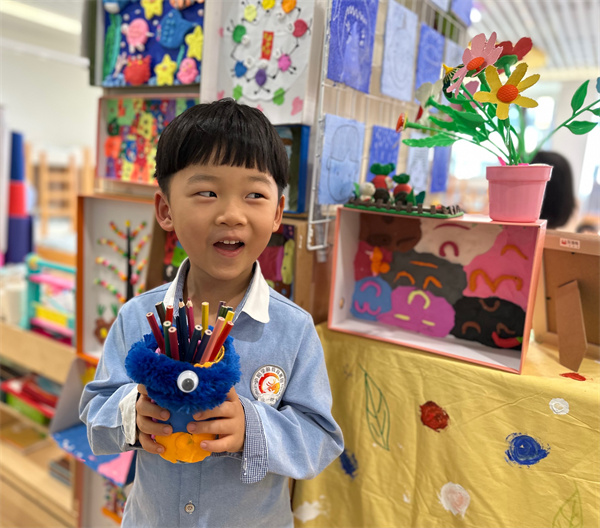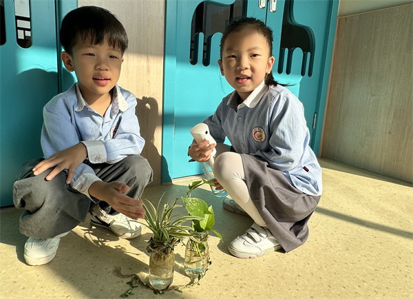 瓶子它们还有很多用途呢。我们的孩子开动脑经,奇思妙想,瞧,把一个个瓶子大变模样,用透明的玻璃瓶子水培植物,便于我们观察植物根系的成长。给塑料瓶进行载剪变成了一个可爱的笔筒,利用瓶子的可滚动行装饰了**的滚轮等等,孩子们在此次活动中动手又动脑,开心极了!