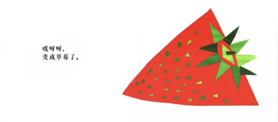 幼儿用身体搭建出了大大小小的三角形,如果好多好多的三角形待在一起会变出什么呢?带着这样的问题,我们一起分享了绘本《三角形滴溜溜》,孩子们知道三角形组合可以变成草莓、青蛙、狐狸、雨伞……孩子们在三角形的不断变化中打开了对于三角形的认知。