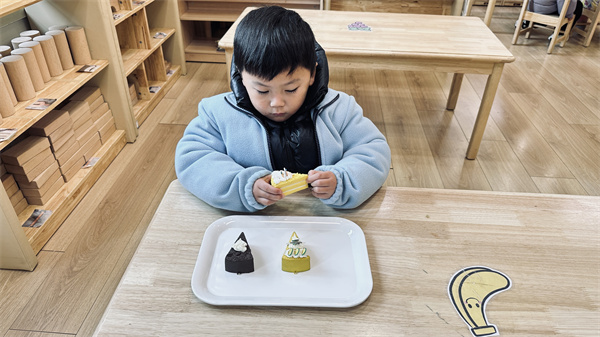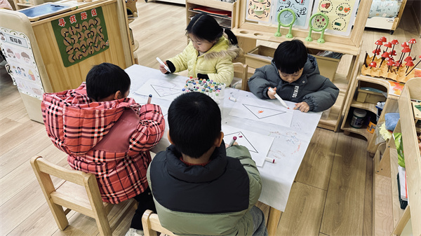 幼儿通过多种方式来对三角形进行探秘,体验了游戏的乐趣。在探讨的过程中,幼儿不仅提高了语言表达能力,也加深了对三角形的理解,同时激发了幼儿对其它图形探秘的欲望,让我们跟随着幼儿的步伐,去探秘更多的图形吧!