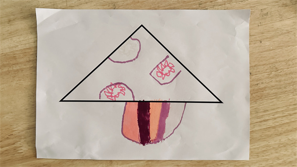 三角形还可以变成什么呢?小朋友们进行了一系列的联想,变成了各种各样有趣的东西,我们一起来欣赏一下吧!