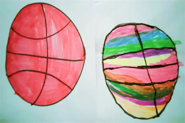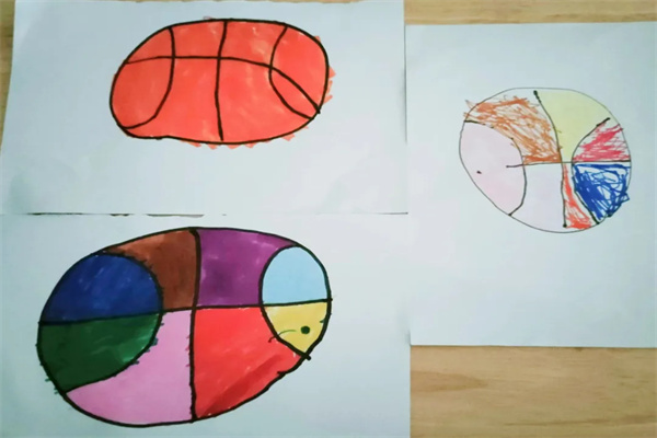 朱子辰:篮球圆圆的,有好多种颜色,篮球表面还有线条。