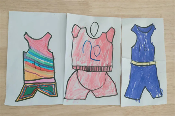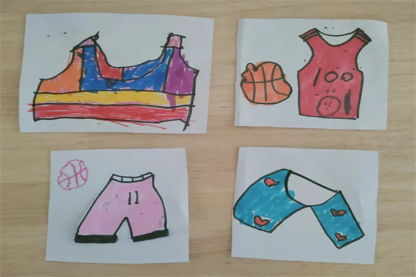 在了解关于篮球的过程中,孩子们观察到每位篮球运动员都有一套自己的专属球衣,每个球衣上都会有一个数字,孩子们变身服装设计师,设计出一套套富有个性的球衣和球鞋,有你喜欢的吗?快来选一选吧!