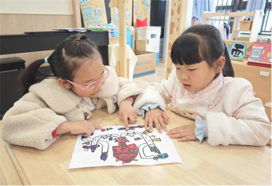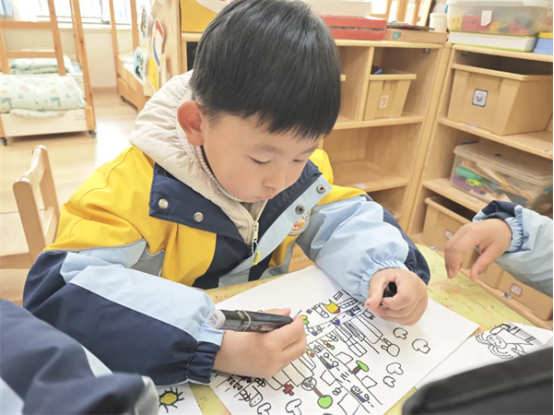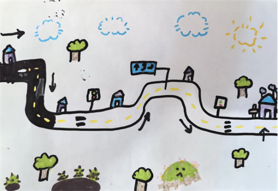 就这样,带着对比和分析的任务,小朋友们归纳出一张清晰的路线图,带着对比和分析的任务,开始进行绘制路线图。