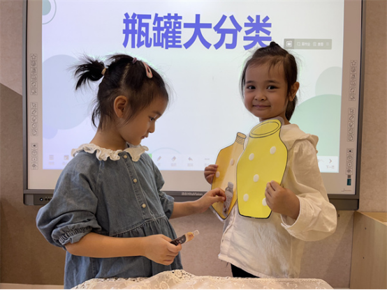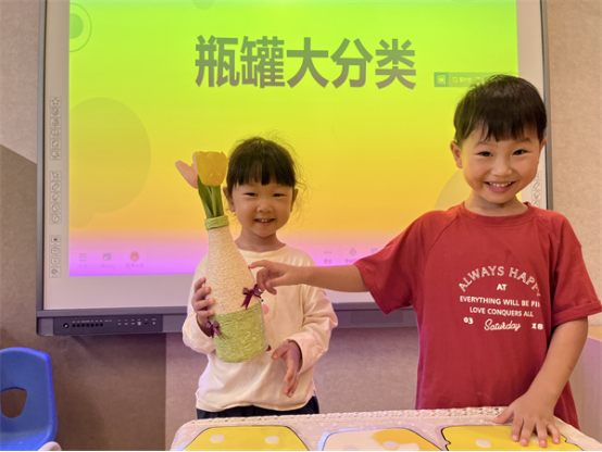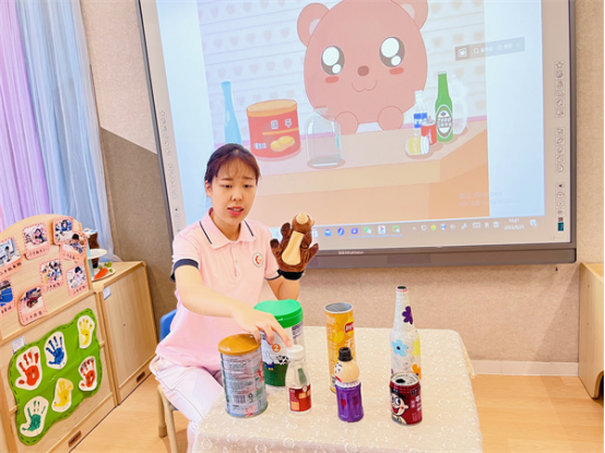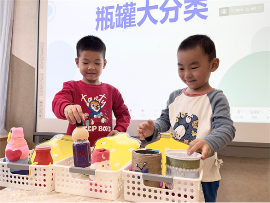 “那瓶子和罐子都有哪些种类的呢?我们一起分类吧!”