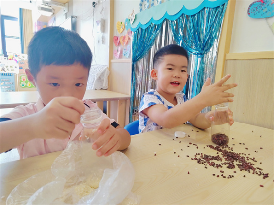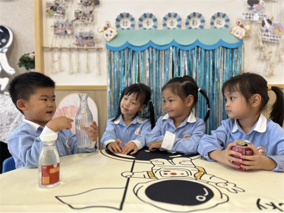经过宝贝们的收集,教室里放满了各种各样的瓶罐,在使用瓶罐的过程中,孩子们发现了一个关于瓶罐的秘密。
