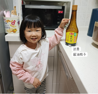“我在家里找到了我的奶粉罐是铁的做的,也是圆圆的。”