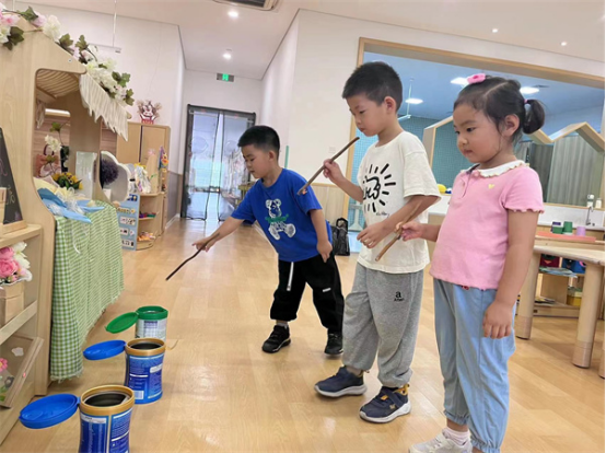 咦!瓶宝宝竟然会“唱歌”!沙沙沙,叮叮彭彭......原来是孩子们在探索用不同的方法让瓶子发出声音,感受不同的瓶瓶罐罐发出的不同声响,有的手拿瓶罐进行敲打伴奏;有的用木棍敲击瓶罐;还有的在瓶罐里装入各种开放性材料,通过摇晃使其发出声响,一起来看看小小演奏家吧!
