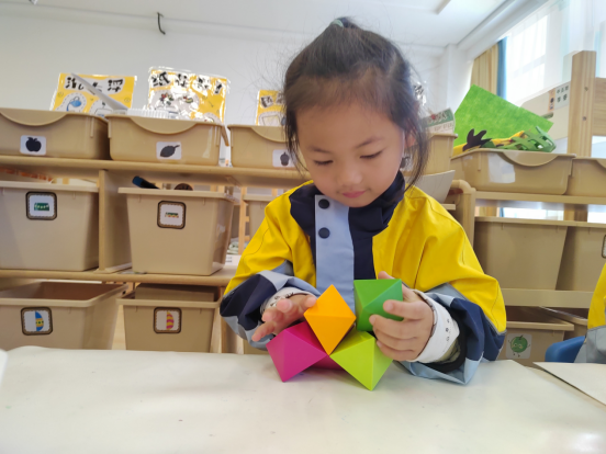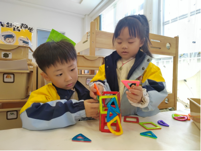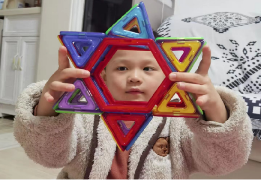 在小朋友的眼里,世界充满了奇妙的色彩!为什么天会这样蓝,为什么花儿总是这么鲜艳?为什么小鸟能飞翔……孩子们的好奇心像一颗永不熄灭的火苗,生活中再常见的事物都能引起他们极大的关注。今天中五班的孩子们就对区角中的磁力片产生了极大的兴趣。