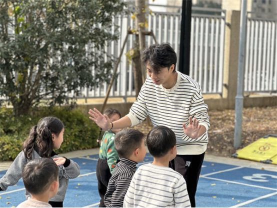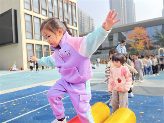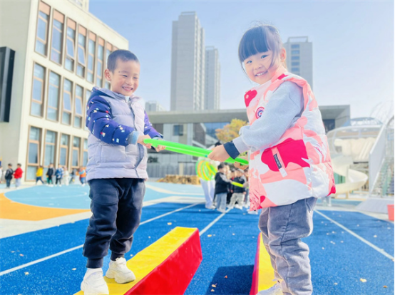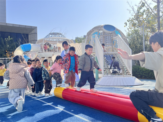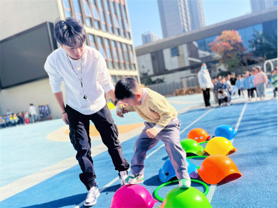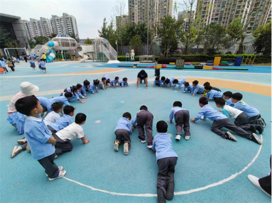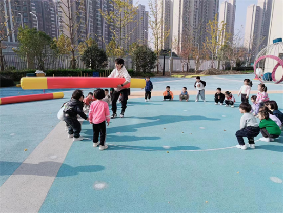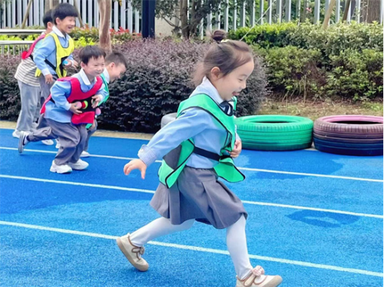 中班组幼儿相较于小班组他们的体力和动作能力都有所发展,平衡能力和自理能力也有很大的提升,他们能辨别方向,注意力较易集中,能比较自觉地遵守游戏规则。中班幼儿比较喜欢有剧情、有角色、有追逐性体验感的游戏,如:《乌龟转圈圈》《前线救援员》等。