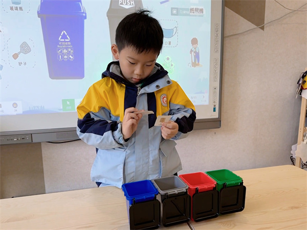 为了让幼儿更好地将理论知识付诸实践,教师设计了垃圾分类模拟环节。这一环节旨在让幼儿亲手操作,亲身体验垃圾分类的过程,从而加深他们对环保知识的理解和实践能力。