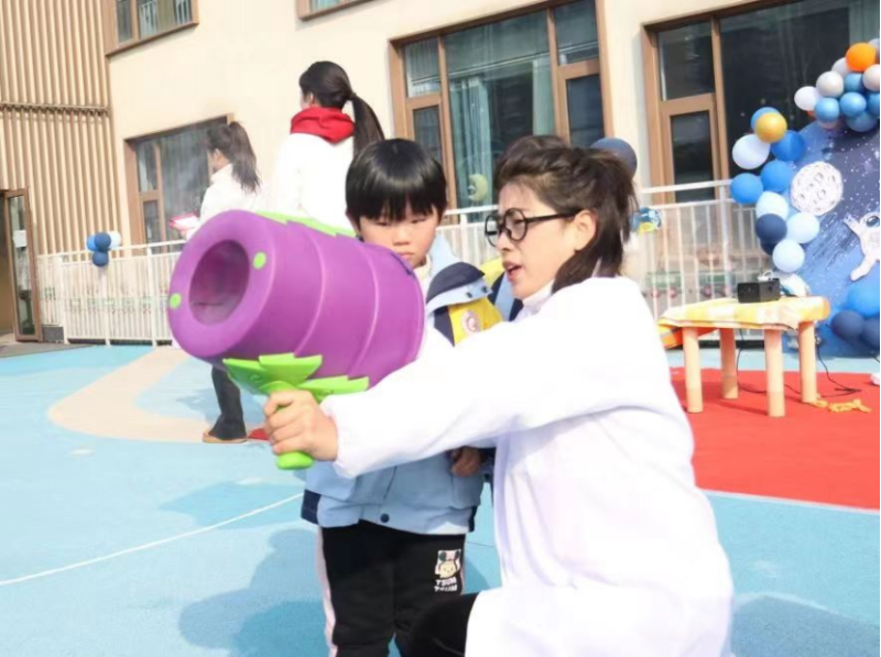 无处不在的空气,在孩子眼中蕴含着许多“小秘密”,随着“砰”的一声巨响,“烟圈炮弹”从弹筒里喷涌而出,孩子们的**也被点燃到了**。