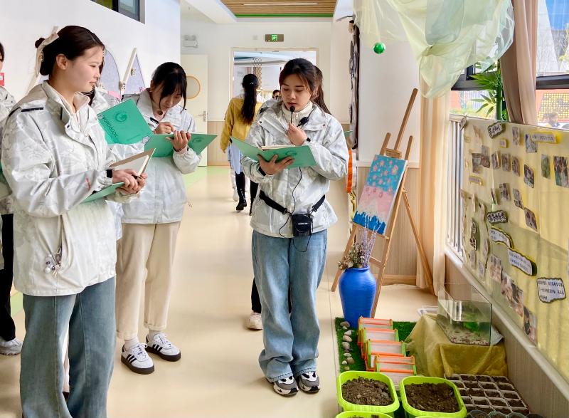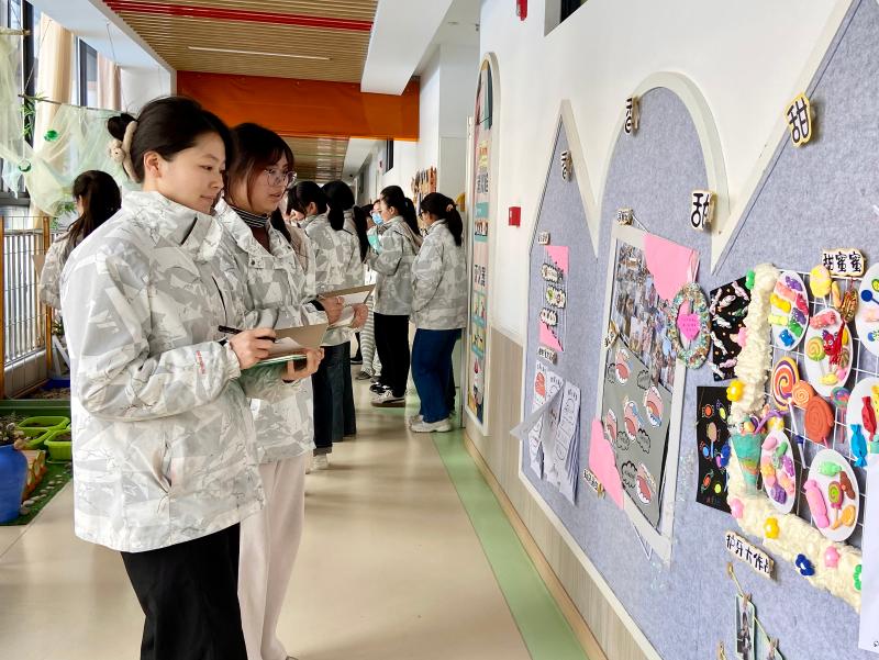 秉承“以幼儿为本”的宗旨,各班教师对班级主题墙、区域环境创设及植物角进行讲解,详细介绍区域环境创设的整体思路、布局规划以及材料投放的亮点。观摩教师认真观察、记录。观察主题墙布局是否合理,是否有幼儿参与性体现;植物角创设是否符合教育意义;区域活动的材料投放是否支持幼儿的游戏活动等。
